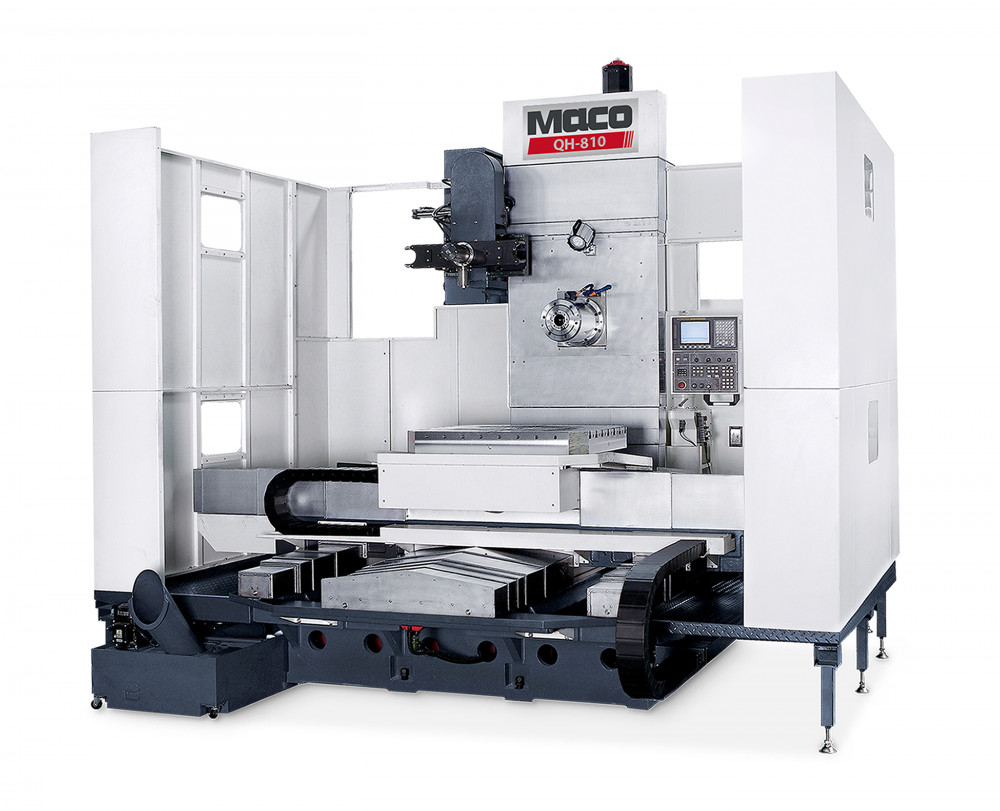 The Spindle of BT-50 with high precision and high rigidity bearings. Maximum spindle speed reaches 6000rpm combined with two-steps speed change suitable for various cutting requirement. The spindle oil coolant with coolant circulated quill may effectively control spindle temperature growth in at a constant condition. This not only suppresses thermal deformation but also ensure the cutting accuracy of the spindle. Long spindle nose design with less interference range makes it suitable for deep hole machining.